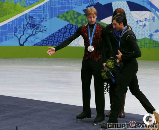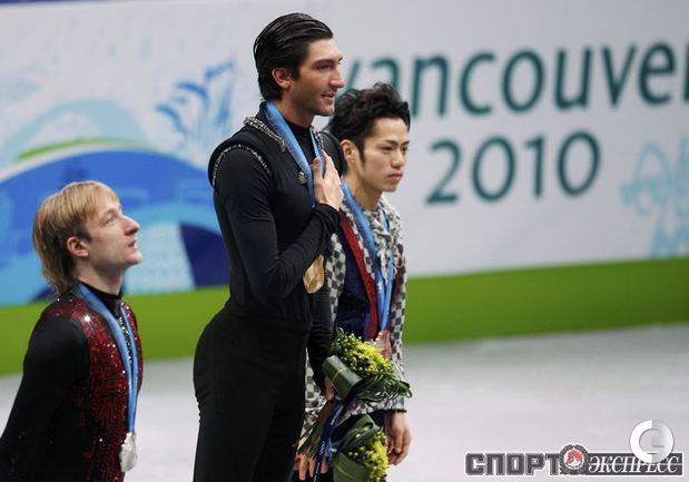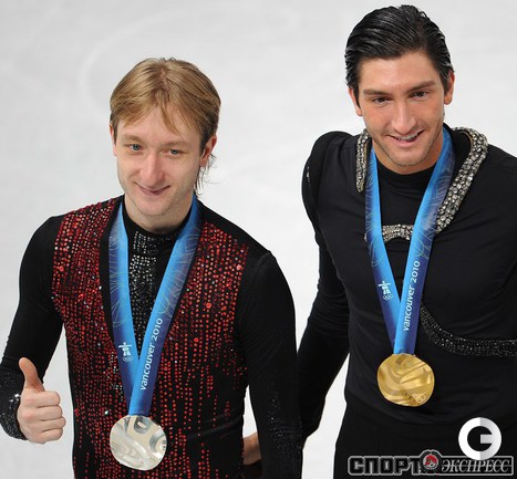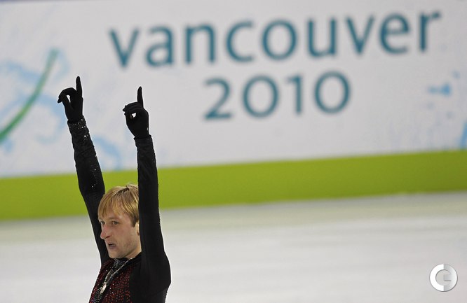 18 февраля 2010 года. Ванкувер. Pacific Coliseum. Произвольная программа. Итог. Золото - Эван ЛАЙСАЧЕК (США). Серебро - Евгений ПЛЮЩЕНКО (Россия). Фото AFP и REUTERS