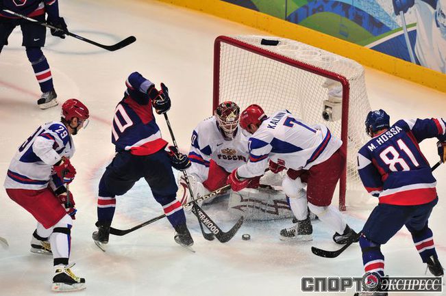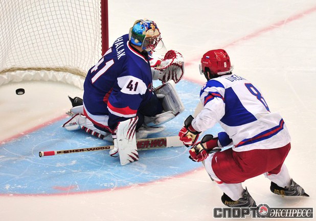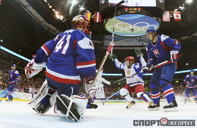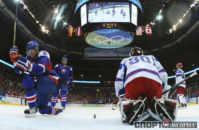 18 февраля 2010 года. Ванкувер. Canada Hockey Place. Групповой турнир. 2-й тур. Группа В. Словакия - Россия - 2:1 Б. Голы: Мариан Хосса - Морозов. Победный буллит: Демитра. Фото AFP и REUTERS.