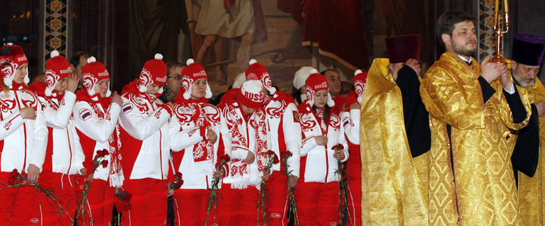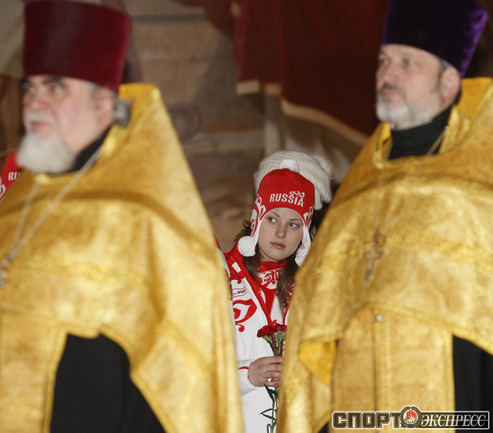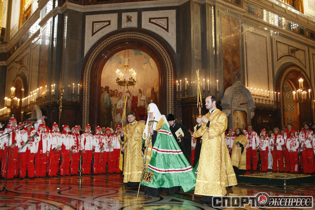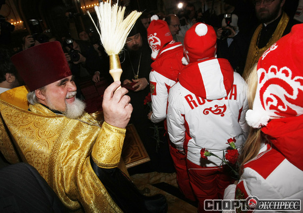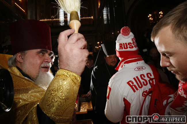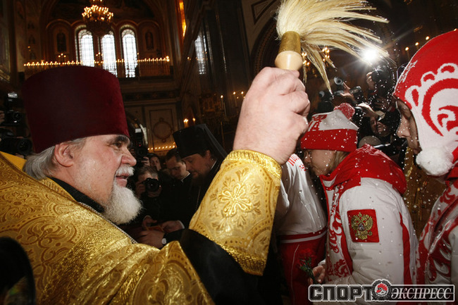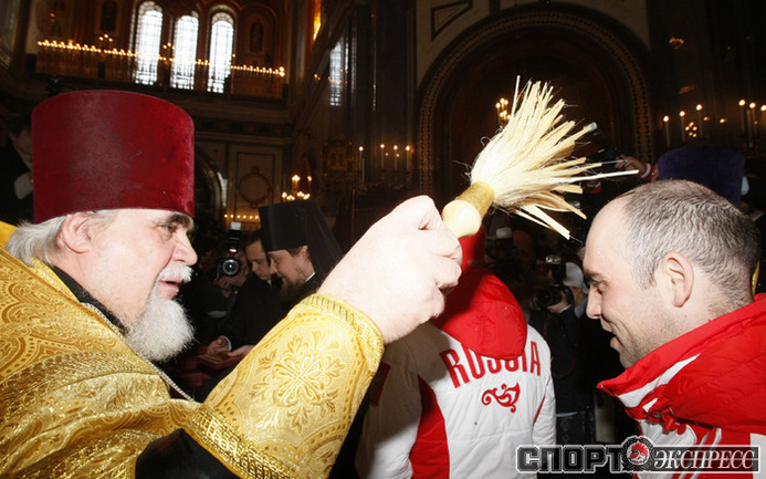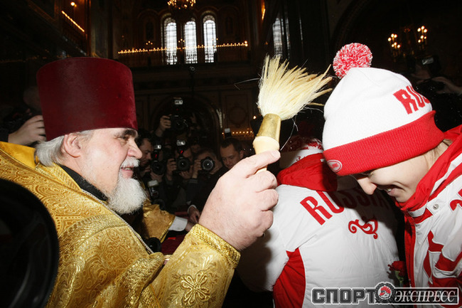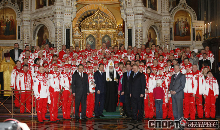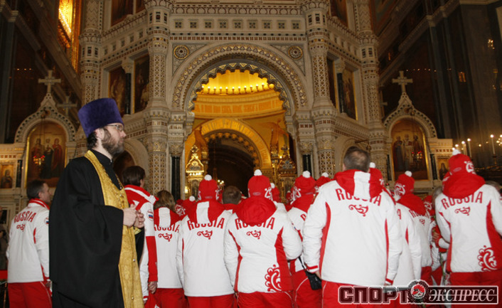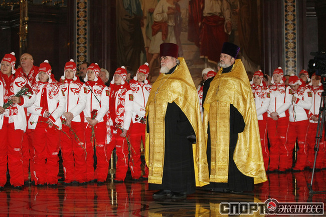 В Храме Христа Спасителя прошел торжественный молебен, посвященный проводам олимпийской сборной России на Игры в Ванкувере. Фото - Александр ФЕДОРОВ, "СЭ"