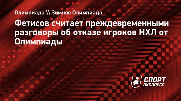 «Сейчас рано говорить, откажутся ли игроки НХЛ играть на Олимпиаде или нет. В любом случае решение будет не за МОК или международной федерацией, а именно за лигой, так как, по сути, она рулит всеми процессами по олимпийскому турниру. В последний момент они точно не смогут отказаться. Если это реально случится, то это произойдет заранее», — цитирует Фетисова ТАСС.
