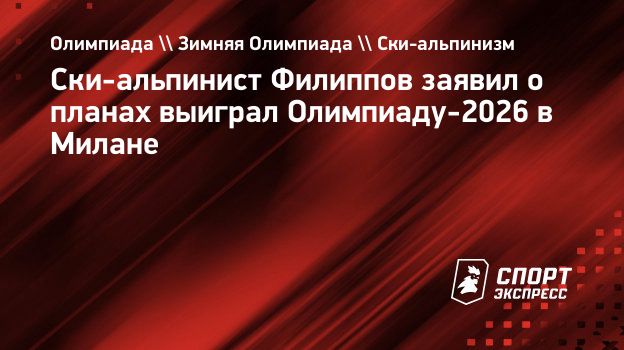 Российский ски-альпинист Никита Филиппов заявил о планах стать олимпийским чемпионом Игр 2026 года.