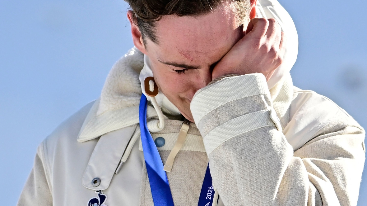 Лыжник Матис Делож эмоционально отреагировал на получение серебряной медали Олимпийских игр 2026 года.