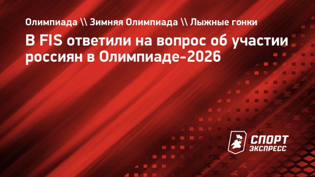 В пресс-службе Международной федерации лыжного спорта и сноуборда (FIS) прокомментировали «СЭ» информацию о возможном допуске двух российских лыжников на Олимпиаду-2026.