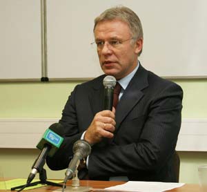 Особое внимание Вячеслав Александрович уделил современному состоянию отечественного спорта. По его мнению, одна из основных проблем - пенсионный возраст руководителей и сотрудников Олимпийского комитета России, федераций и спортивных союзов России. Второй важной проблемой было названо должностное несоответствие, очень низкий уровень профессионализма и нежелание перенимать новации в области спортивного менеджмента большинством функционеров и сотрудников спортивных клубов. Прежде всего это относится к хоккею, футболу, баскетболу и волейболу, где на сегодняшний момент сосредоточено большинство финансовых потоков отрасли. И еще, по оценке главы Росспорта, Россия недосчиталась в Афинах минимум пяти медалей из-за безобразного менеджмента. |
