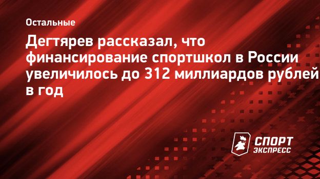 Министр спорта и глава Олимпийского комитета России (ОКР) Михаил Дегтярев на заседании Совета при президенте РФ по физической культуре и спорту рассказал, что объем финансирования спортивных школ достиг 312 миллиардов рублей в год.