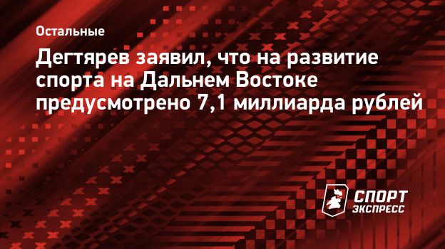 Что касается спорта на Дальнем Востоке, то на его развитие в 2026-2028 годах предусмотрено 7,1 миллиарда рублей. Планируется строить как капитальные, так и модульные объекты, площадки ГТО. Часть спорткомплексов встанет на ремонт», — написал в своем Telegram-канале Дегтярев.
