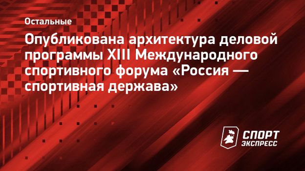 Опубликована архитектура деловой программы XIII Международного спортивного форума «Россия — спортивная держава»