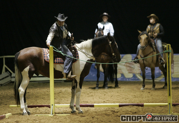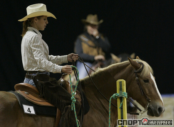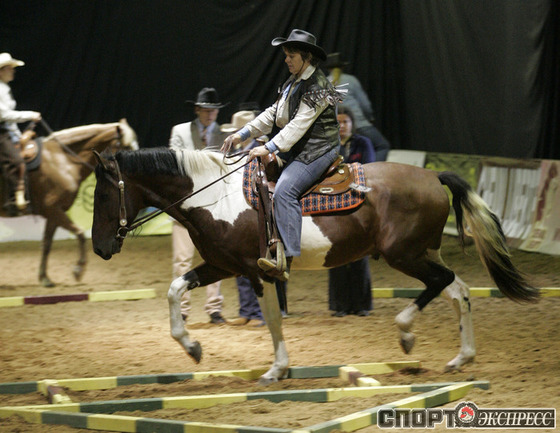 В Москве прошел "Кубок ЭКВИРОСА" по спортивному вестерну, первые официальные соревнования с международным судейством в России. Главный судья Франц ФОРРЕБЕР, известный австрийский специалист европейского вестерна, определил победителей в следующих дисциплинах: трейл - Ольга ПАВЛИХИНА, плежер - Никита РЫЛОВ, вестерн хозменшип - Надежда РОМАНОВА, рейнинг - Наталья ШАПОВАЛОВА. Фото - Федор УСПЕНСКИЙ, "СЭ"