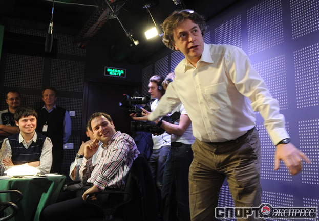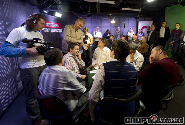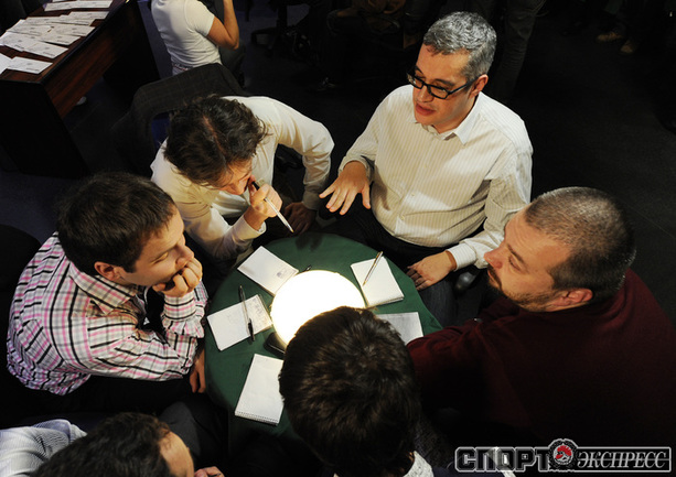 В телевизионной студии "Спорт-экспрсесс" прошел товарищеский поединок по интеллектуальной игре "Что?Где?Когда?" между командой гроссмейстеров во главе с Гарри Каспаровым и командой знатоков Максима Поташева. О том, кто победил в поединке, можно будет узнать в ближайшие дни на портале "СПОРТ-ЭКСПРЕСС" в разделе "Видео". Фото - Федор УСПЕНСКИЙ, "СЭ"
