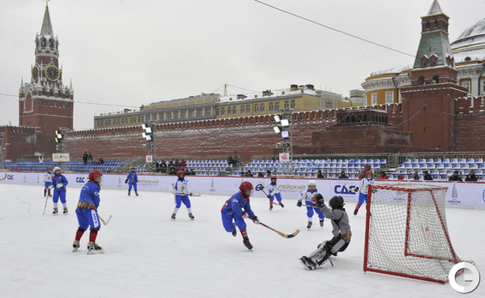 Хоккей с мячом. На Красной площади Москвы прошел международный детский турнир на призы Патриарха Московского и всея Руси Кирилла. Фото- Александр ФЕДОРОВ,"СЭ"