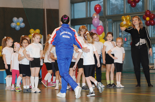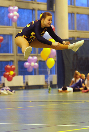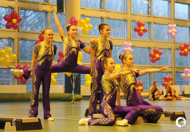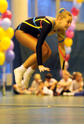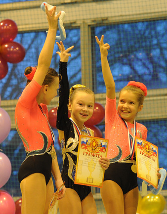 Спортивная аэробика — это молодой, но уже довольно популярный вид спорта. Он относится к видам гимнастики, обещая в самом ближайшем времени стать олимпийским. Детско-юношеские соревнования по спортивной аэробике во Дворце пионеров на Воробьевых горах. Фото - Федор УСПЕНСКИЙ, "СЭ"