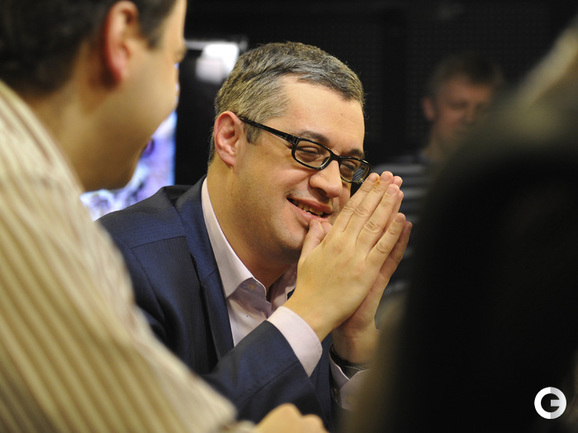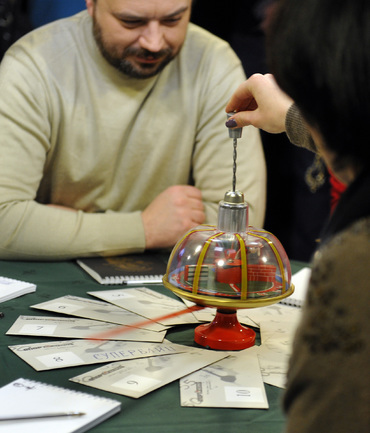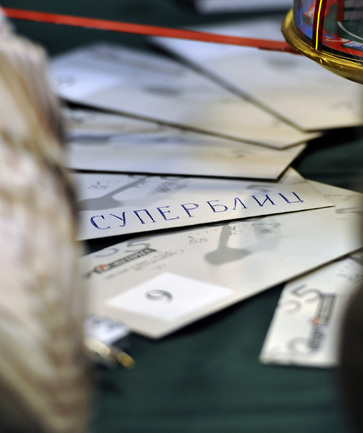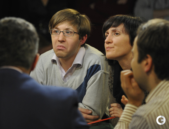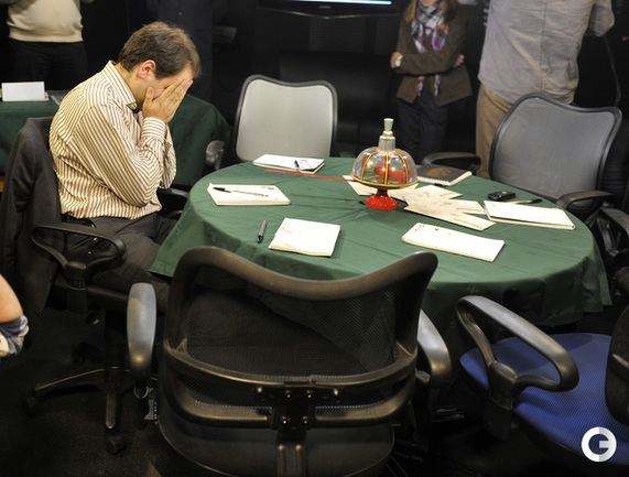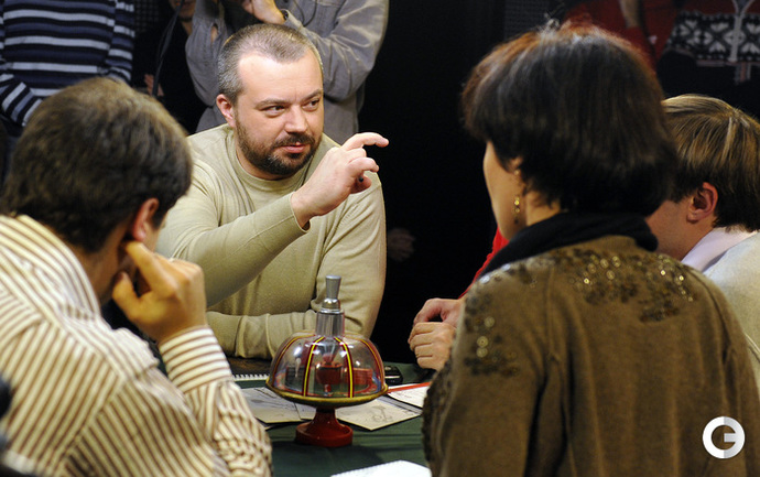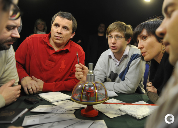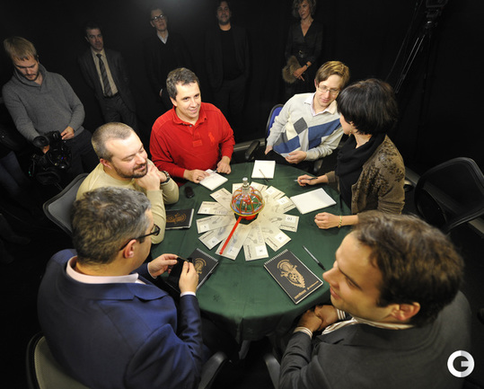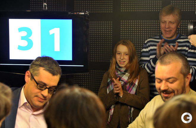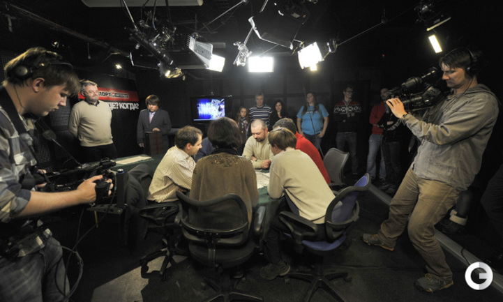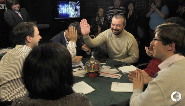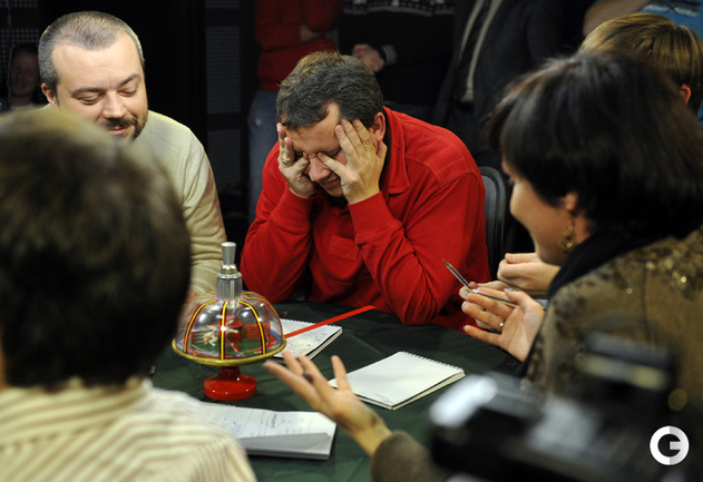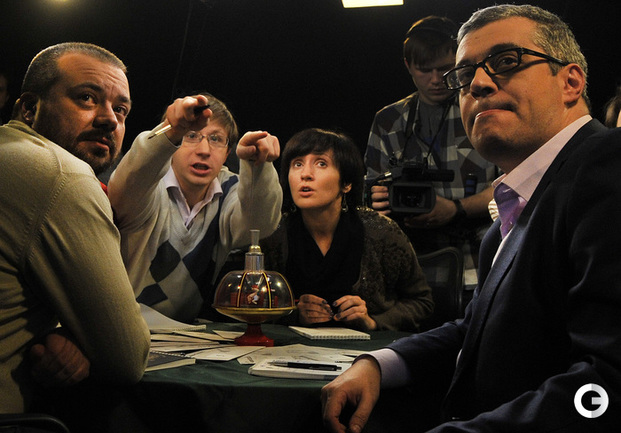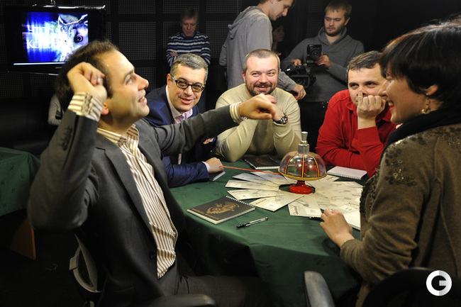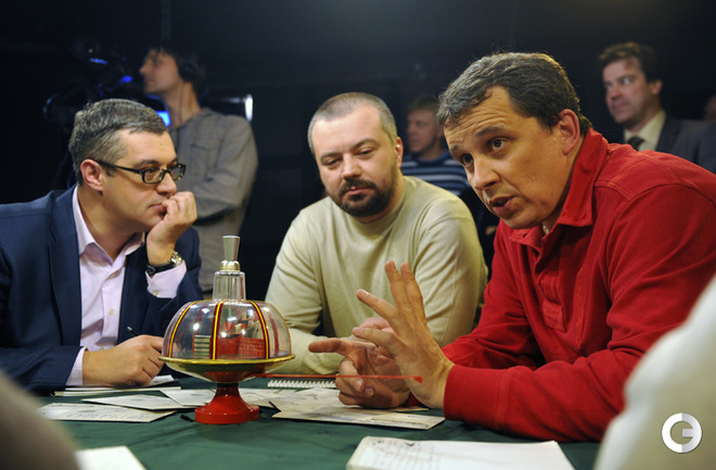 Традиционная предновогодняя игра знатоков клуба "Что?Где?Когда?" против читателей "Спорт-экспресс", приславших свои вопросы на игру, состоялась в телевизионной студии нашего издательского дома. Ведущий игры - обозреватель "СЭ", лучший игрок "Что?Где?Когда?" 2012 года, обладатель приза "Бриллиантовая сова" Борис Левин. Общий счет предыдущих встреч - 6:4 в пользу читателей и редакции "СЭ". Как закончился первый гейм нового сета? Ответ - в скором времени на страницах "Спорт-экспресс". Фото - Александр ФЕДОРОВ, "СЭ"