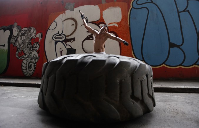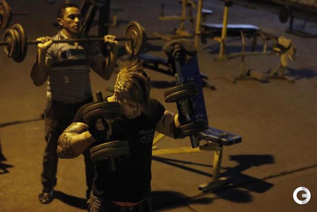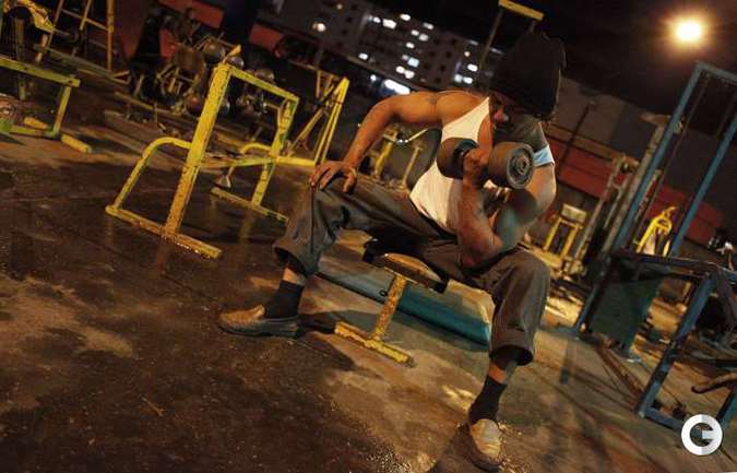 Тренажерный зал был основан в 2009 году бывшим бразильским профессиональным боксером Нильсоном Гарридо под виадуком Алькантара Мачадо в районе Мука в Сан-Паулу с целью вытащить молодежь из мира наркотиков и преступности через спорт. В настоящее время тренажерный зал, в котором все оборудование собрано за счет пожертвований, посещают ежедневно более ста человек, большинство из них являются безработными или имеют финансовые проблемы. Посетители занимаются бодибилдингом или другими видами спорта здесь просто ради удовольствия. Фото REUTERS