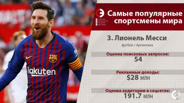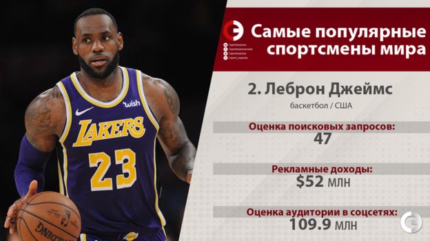 Следом за Роналду расположились форвард "Лейкерс" Леброн Джеймс и нападающий "Барселоны" Лионель Месси.