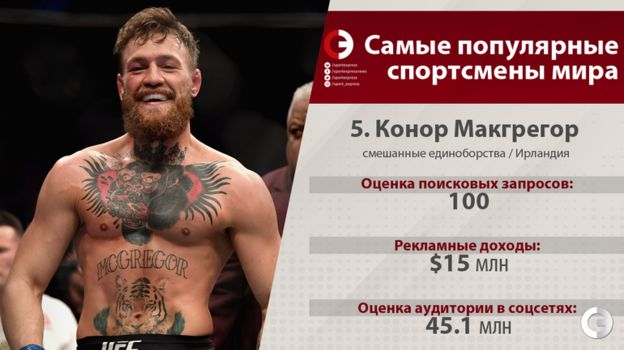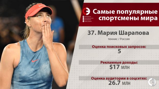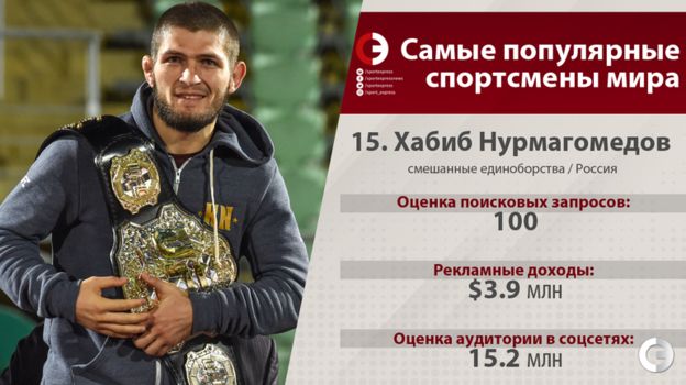 Из российских спортсменов в рейтинг попали чемпион UFC Хабиб Нурмагомедов (15-е место) и теннисистка Мария Шарапова (37-е место).