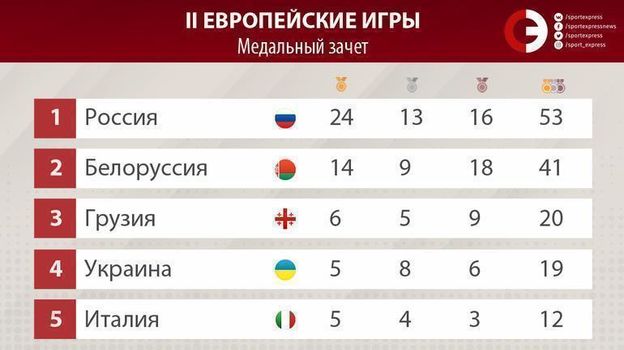 Европейские игры в Минске завершатся 30 июня. Всего на турнире будет разыграно 200 комплектов наград в 15 видах спорта.