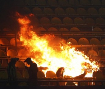 Огонь, вода и чемпионство"Бурсаспор" стал чемпионом Турции. За всю историю страны это пятый клуб, который когда-либо праздновал успех в национальном футбольном первенстве. Болельщики ближайшего преследователя - "Фенербахче" - не оценили значимость момента, равно как и игру своей команды, которая не смогла вырвать решающую победу. В итоге досталось и креслам, подожженным в запале, и газону поля, на который пришлось пустить пожарную машину. Фото REUTERS |