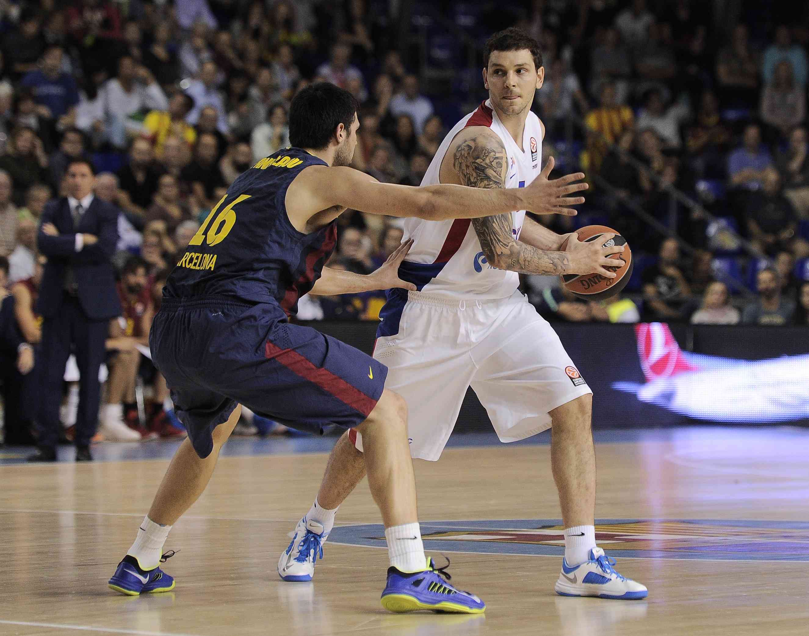 ЦСКА в матче 1-го группового турнира Евролиги в гостях уступил "Барселоне" (70:79). Самым результативным игроком встречи стал лидер каталонцев Хуан Карлос Наварро, набравший 20 очков. У армейцев больше всех результативных баллов на счету Владимира Мицова. Эта победа позволила сине-гранатовым обойти российский клуб в группе А.
