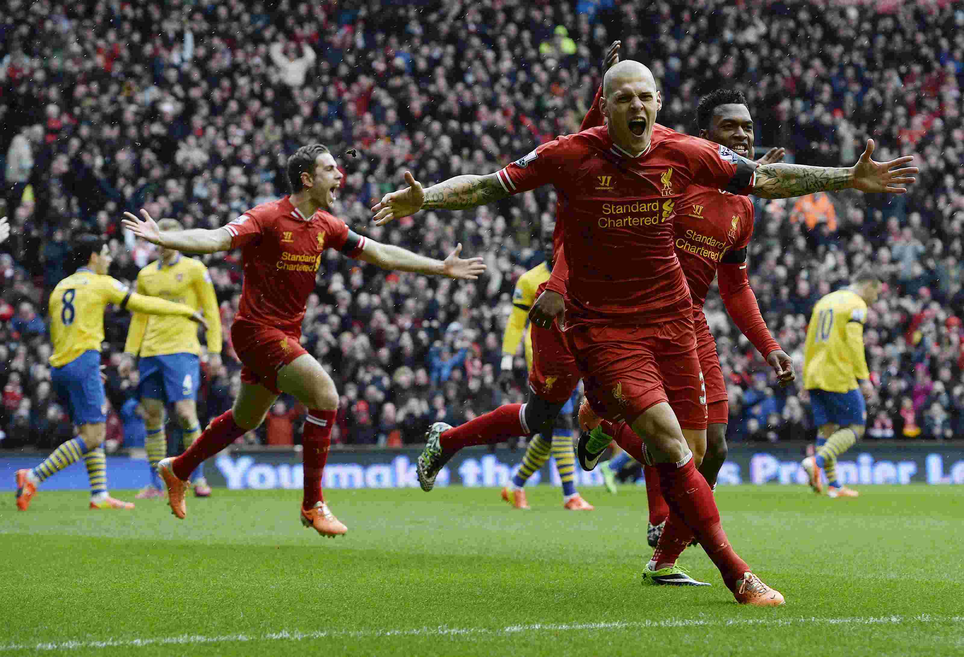 "Ливерпуль" в матче 25-го тура премьер-лиги нанес разгромное поражение "Арсеналу" со счетом 5:1 – уже к 20-й минуте лондонцы пропустили четыре гола. По дублю на свой счет записали мерсисайдцы Мартин Шкртел и Рахим Стерлинг, еще один мяч в сетку ворот Войцеха Щенсны отправил Даниэл Старридж. Единственный гол в составе подопечных Арсена Венгера забил с 11-метровой отметки Микель Артета. Осечкой конкурента воспользовался "Челси", который после победы над "Ньюкаслом" (3:0) вышел на первое место в турнирной таблице.