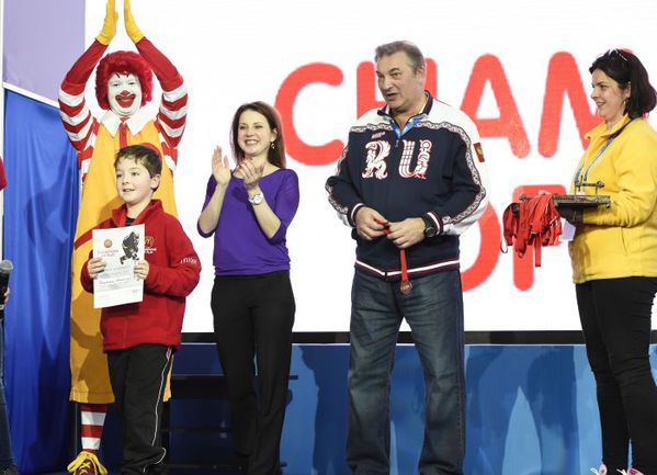 – Замечательно, что вам, ребята, удалось одержать первую, самую важную в вашей жизни победу, – сказал Владислав Третьяк. – И за эту победу сегодня я благодарю не только вас, но и компанию "Макдоналдс", которая понимает важность таких побед, осознает значимость детского спорта и помогает организовывать условия, соревнования и программы, которые позволяют одерживать победы, преодолевать себя, становиться сильнее, лучше, активнее! Поздравляю и желаю вам новых спортивных достижений, ну и постоянных успехов в основной вашей деятельности – в учебе.