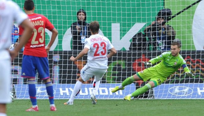 ЦСКА в матче 4-го тура премьер-лиги на своем поле уступил "Спартаку" (0:1). Единственный гол в ворота Игоря Акинфеева с пенальти забил Дмитрий Комбаров. Главный арбитр встречи Владислав Безбородов назначил спорный одиннадцатиметровый в ворота армейцев после падения защитника Сергея Паршивлюка. Таким образом, красно-белые обошли в турнирной таблице красно-синих, которые прервали свою рекордную победную серию, насчитывавшую 13 матчей.