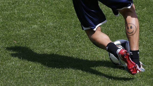 Одно из тату Алессандро Дьяманти — не смешно? Фото REUTERS