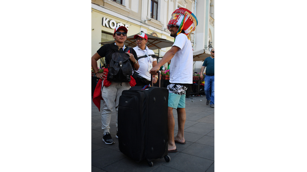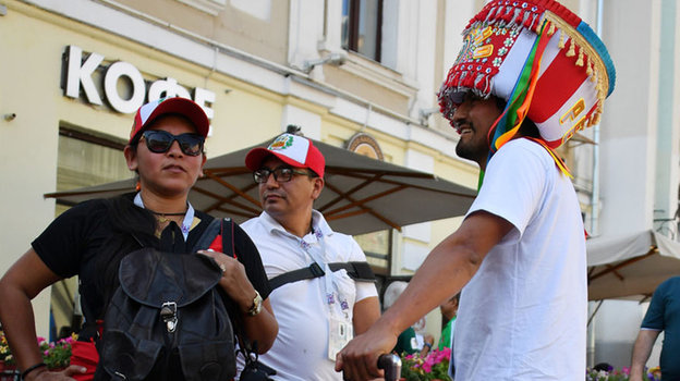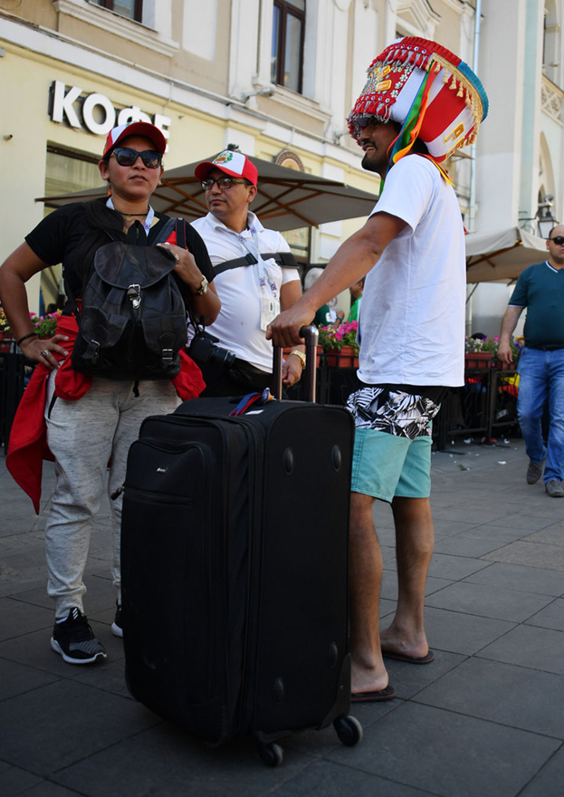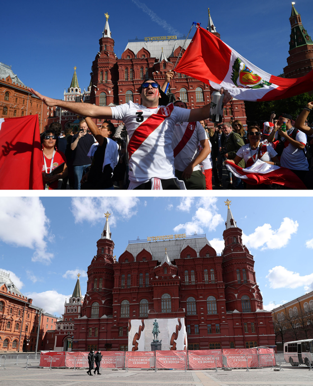 Болельщики сборной Перу на фоне Исторического музея. Их сборная одержала всего одну победу — над Австралией в последнем туре — и не вышла из группы, однако перуанские фанаты отрывались в нашей стране по полной программе! Кстати, в Москве латиноамериканцы не сыграли ни одного матча.