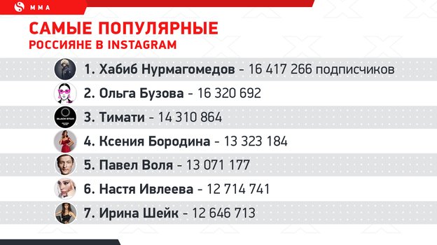 Лидером русского Instagram теперь является боец ММА Хабиб Нурмагомедов, который опередил Ольгу Бузову. Такая глыба шоу-бизнеса осталась позади — это все-таки событие. Но можно ли его записать в актив российского спорта, действительно ли мы имеем дело с популяризацией?