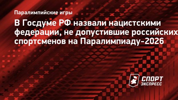 В Госдуме РФ назвали нацистскими федерации, не допустившие российских спортсменов на Паралимпиаду-2026