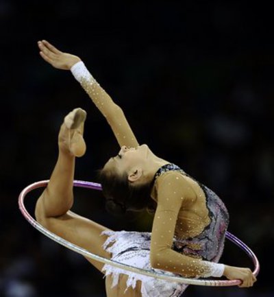 Олимпийская чемпионка-2008 россиянка Евгения Канаева стала абсолютной чемпионкой Европы-2009. Спортсменка также первенствовала в упражнениях с обручем и скакалкой. |