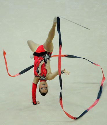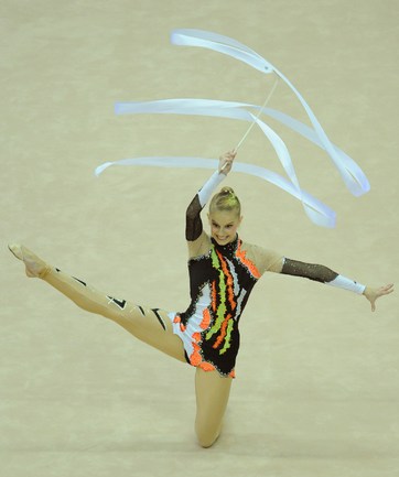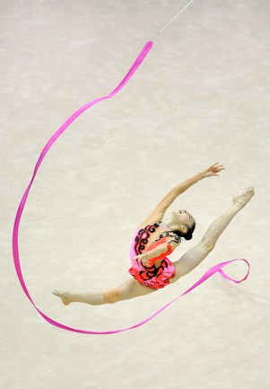 В третий день московского чемпионата мира спортсменки выступали в квалификации с мячом и лентой. Фото AFP