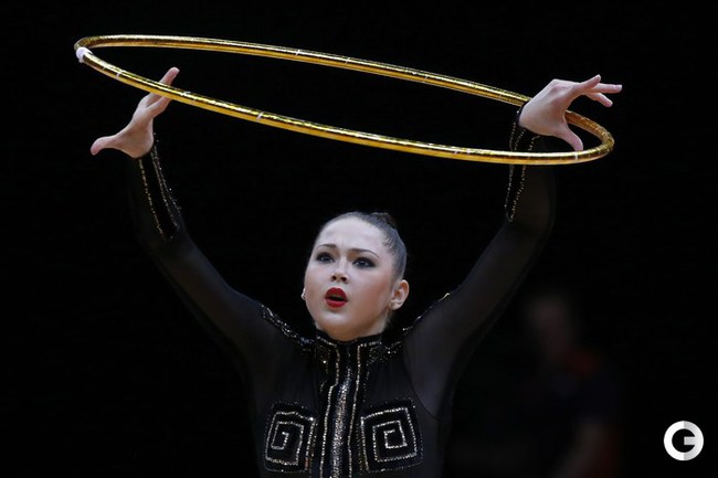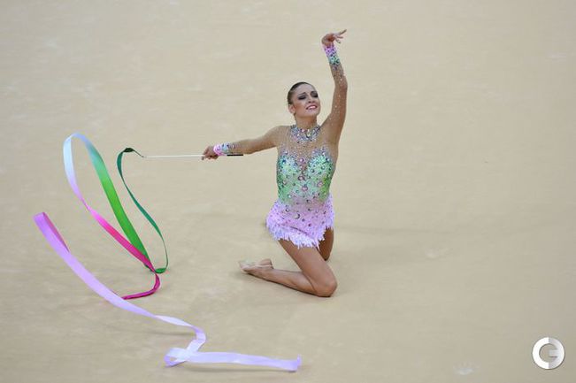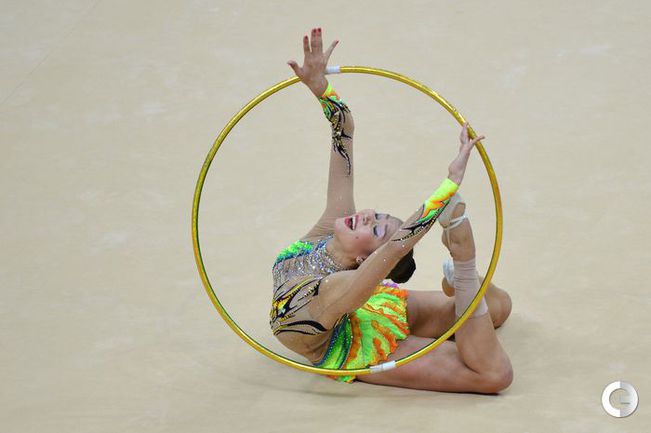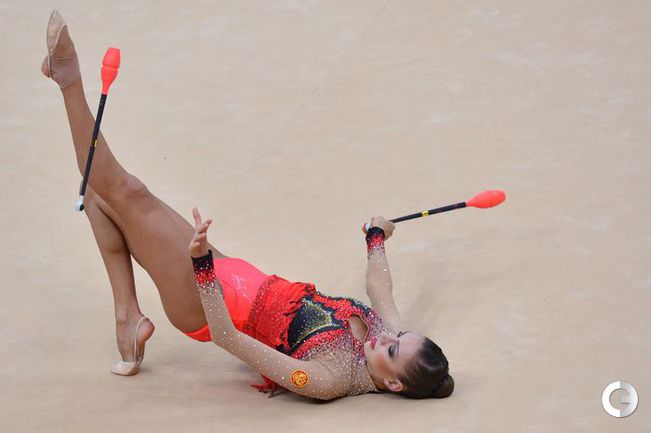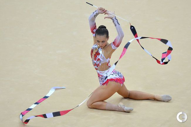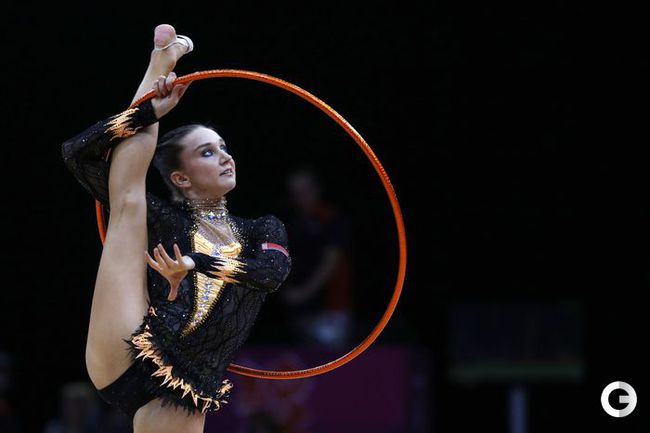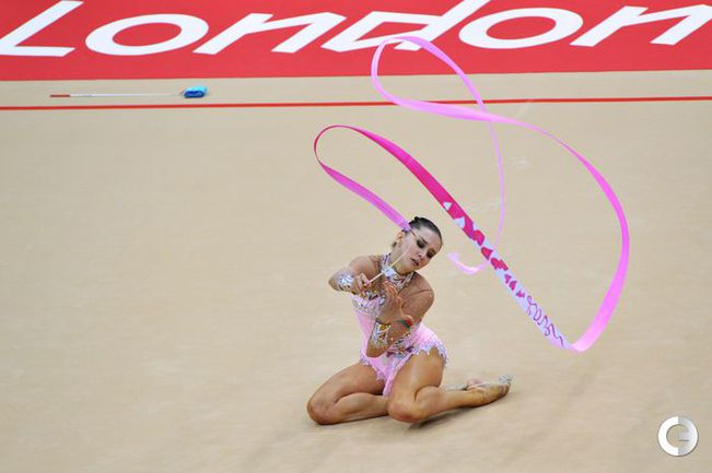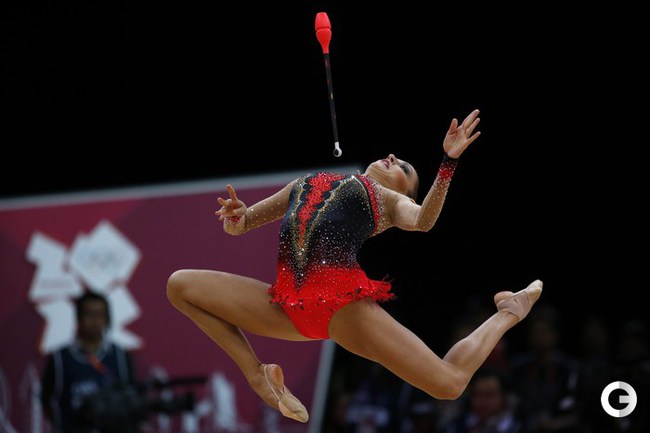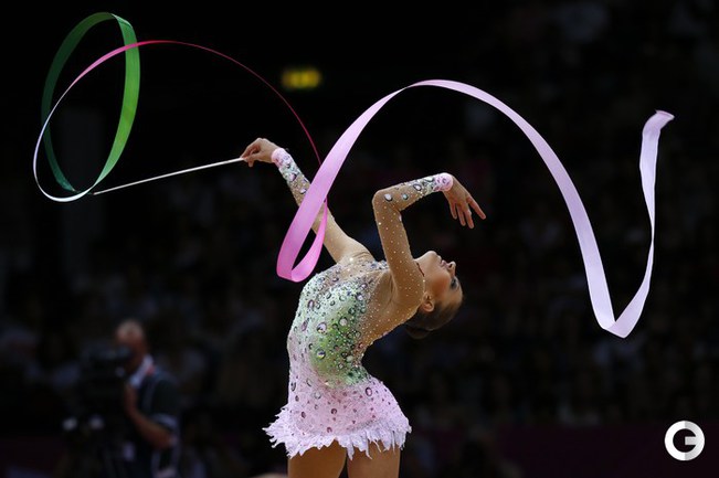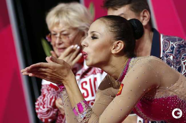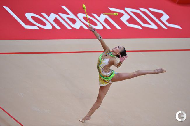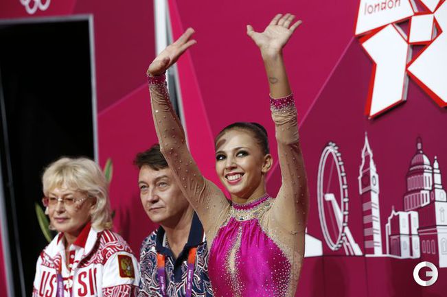 Художествення Гимнастика. Лондон. Олимпийские игры. Личное первенство. Финал. 1. КАНАЕВА (Россия) - 116,900. 2. ДМИТРИЕВА (Россия) - 114,500. 3. Черкашина (Белоруссия) - 111,700. 4. Гараева (Азербайджан) - 111,575. 5. Сон Ен Джэ (Корея) - 111,475. 6. Максименко (Украина) - 109,625. Фото AFP