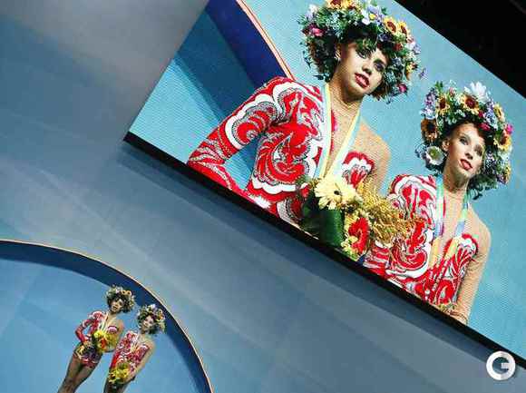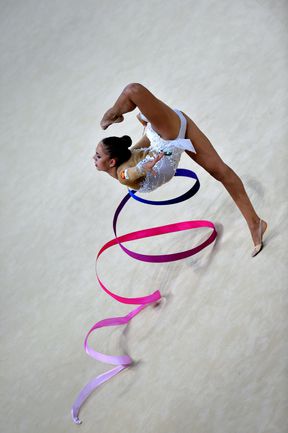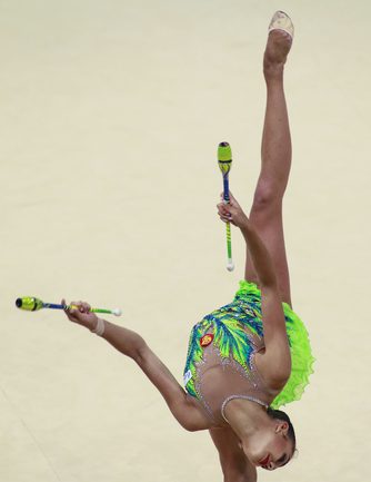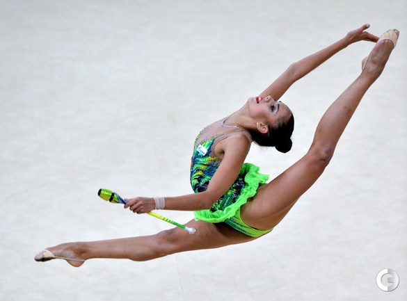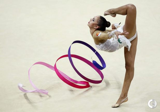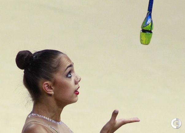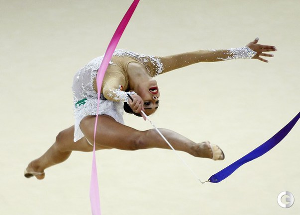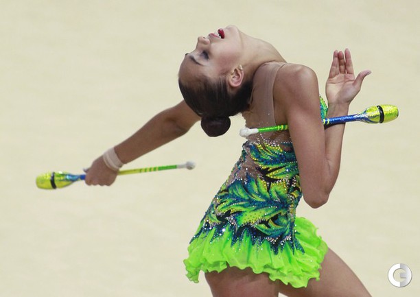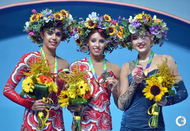 Киев. Маргарита Мамун и Яна Кудрявцева стали чемпионками в упражнениях с булавами. Спортсменки разделили первое место, показав результат 18,366 балла. Фото AFP, REUTERS