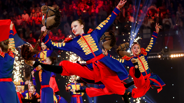 Чудо-растяжка Солдатовой и великолепные платья Крамаренко на празднике в Лужниках