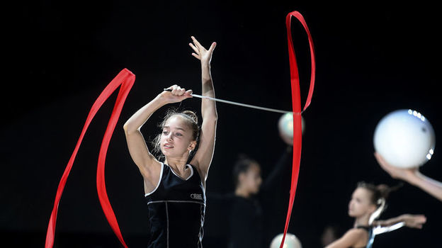– Девочки, смотрите друг на друга, когда бросаете ленту! – командует Кабаева.