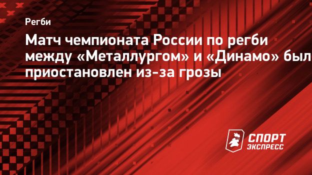 Матч шестого тура чемпионата России по регби между «Металлургом» и «Динамо» был приостановлен из-за грозы, сообщает пресс-служба турнира.