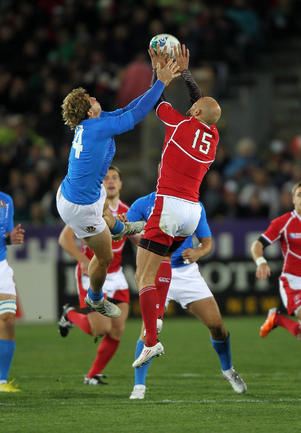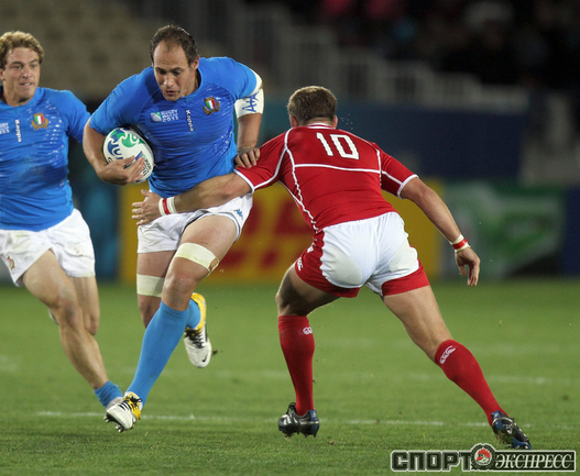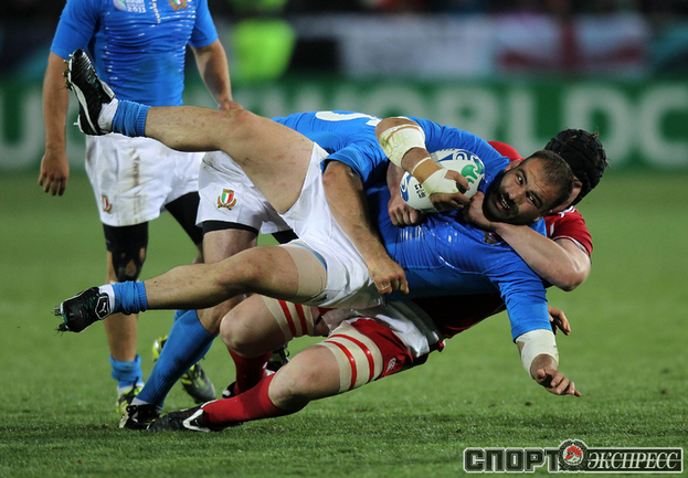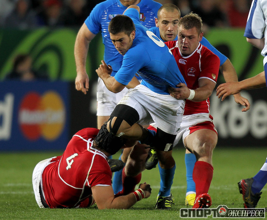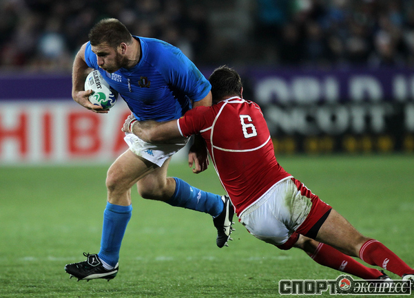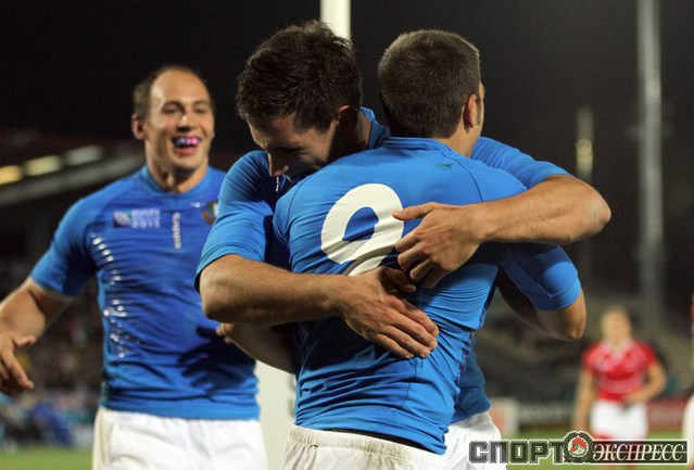 Регби. Нельсон (Новая Зеландия). Кубок мира. Групповой этап. 2-й тур. Группа С. Италия - Россия - 53:17 (38:7). Россияне установили достижение Кубков мира: ранее ни одной команде - дебютанту мирового первенства не удавалось занести три попытки в одной игре. Турнирное положение: 1. Ирландия - 8 очков. 2. Австралия - 5. 3. Италия - 5. 4. США - 4. 5. Россия - 1. Фото AFP