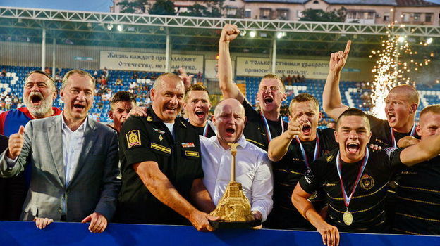 Люди знакомые с военным регби, тем временем, записывали в андердоги вэдэвэшников, а финал пророчили сборной Балтийского флота и нахимовцам. Но десант не был бы десантом, если бы сдался. В итоге он одержал красивую волевую победу над гостями из Калининграда, а в другом полуфинале хозяева не без труда справились с регбистами из Владивостока. Кажется, более идеальной вывески для финала 2 августа придумать было нельзя.