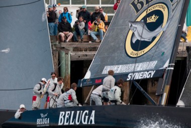 Главная задача всех команд в гонках флота отнюдь не выиграть гонку, главное - продемонстрировать максимальную стабильность. Ведь общий зачет регаты идет по сумме мест, а значит, если хотя бы в одной из гонок ты "падаешь" на 11-е, его уже не отыграть первым, показанным в следующей. Этот принцип в первый день гонок флота в Сан-Диего ярчайшим образом продемонстрировала "Катюша". Команда в четырех проведенных стартах по два раза побывала на третьем и четвертом местах, но по итогам дня вышла на вторую позицию. А вот, проявившая себя очень ярко Artemis - у шведской команды две (!) победы - из-за одного "провала" на десятое место идет по итогам лишь на третьей.