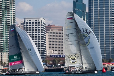 Oracle RC44 San Diego Cup. 3-й день. Гонки флота. 5-я гонка. 1. Aqua (Великобритания, Скотт Юнг, Кэмерон Эпплтон). 2. Islas Canarias Puerto Calero (Испания, Даниэль Калеро, Хосе Мария Понсе). 3. "Катюша" (Россия, Пол Кайярд, Боб Литтл). 4. Artemis (Швеция, Сара Гундерсон, Морган Ларсон). 5. ORACLE (США, Ларри Эллисон, Расселл Куттс). 6. No Way Back (Голландия, Питер Херема, Род Доусон). 7. "Синергия" (Россия, Валентин Завадников, Евгений Неугодников). 8. Ceeref (Словения, Игорь Лах, Микеле Ивальди). 9. AEZ (Австрия, Рене Манголд, Питер Эванс). 10. Ironbound (США, Дэвид Мерфи, Кевин Бернэм). 11. Peninsula Petroleum (Великобритания, Джон Бассардоне, Иньяки Кастаньер).