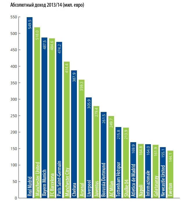 20 самых доходных клубов мира по итогам сезона–2013/14: