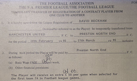 Директор стадиона "Престона" Пол Брэдли рассказал, что до сих пор хранит у себя контракт, который в 1995 году подписал 20-летний Дэвид Бекхэм. Экс-хавбек "Манчестер Юнайтед" один месяц выступал в "Престоне" на правах аренды, провел 5 матчей и забил 2 мяча, один из которых – прямым ударом с углового. Его недельная зарплата тогда составляла 400 фунтов стерлингов в неделю плюс еще 50 фунтов – за выход в стартовом составе.