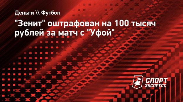 "Зенит" оштрафован на 100 тысяч рублей за матч с "Уфой"