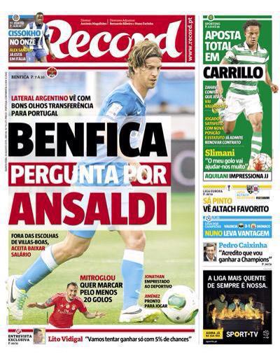 Ансальди готов пойти на понижение зарплаты ради перехода в "Бенфику"