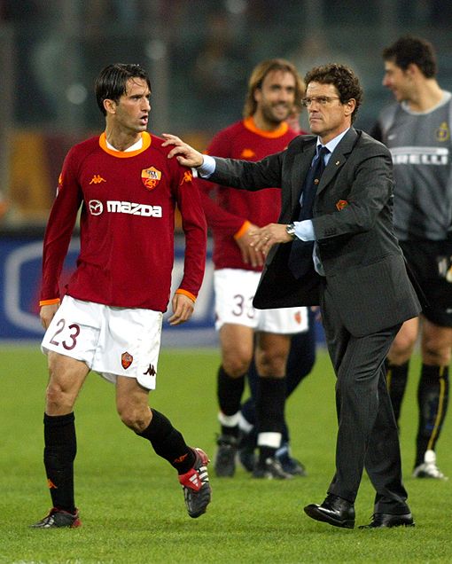 16 ноября 2002 года. Рим. "Рома" - "Интер" - 2:2. Защитник римлян Кристиан ПАНУЧЧИ получает наставления от своего тренера Фабио КАПЕЛЛО. Фото AFP