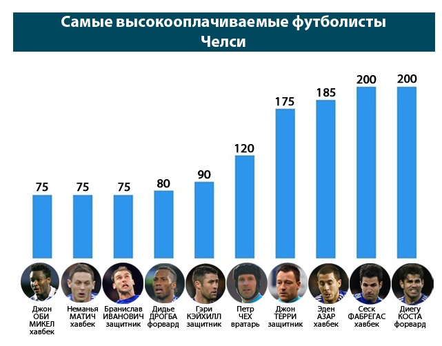 Летом "синие" совершили сразу несколько крупных трансферов, предложив двоим новичкам самую высокую зарплату в клубе. Речь идет о выходцах из испанской примеры – бывшем футболисте "Барселоны" Сеске Фабрегасе и экс-нападающем "Атлетико" Диегу Косте (оба зарабатывают по 200 тысяч фунтов в неделю). Дорогие новобранцы, к слову, пришлись ко двору и честно отрабатывают вложенные в них деньги российского бизнесмена: бразилец с 15-ю мячами лидирует в списке бомбардиров премьер-лиги, а испанский хавбек оставляет позади своих конкурентов в таблице лучших ассистентов: 14 голевых передач против восьми у футболистов, занимающих вторую позицию.