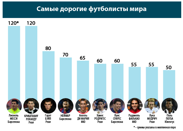 10 самых дорогих футболистов мира. От Месси до Погба