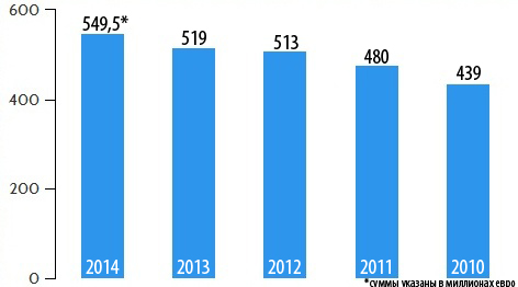 По итогам минувшего сезона "Реал" в десятый раз подряд возглавил составляемый компанией Deloitte рейтинг Football Money League (расстановка футбольных клубов по уровню поступлений средств от футбольных операций). Согласно данным, собранным специалистами аудиторской компании, в сезоне-2013/14 мадридцы сумели получить доход в 549,5 миллиона евро. Это на 30,6 миллиона больше, чем годом ранее (рост – 6 процентов). А за последний пятилетний период доходы "Королевского клуба" выросли и вовсе на 111 миллионов.