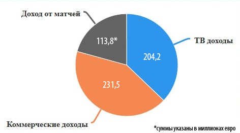 Если общие доходы клуба, как уже отмечалось, выросли на 30,6 миллиона евро, то телевизионные доходы прибавили 15,9 миллиона (рост 8 процентов) и составили 204,2 миллиона, коммерческие поступления достигли цифры в 231,5 миллиона (рост на 19,9 миллиона или 9 процентов).