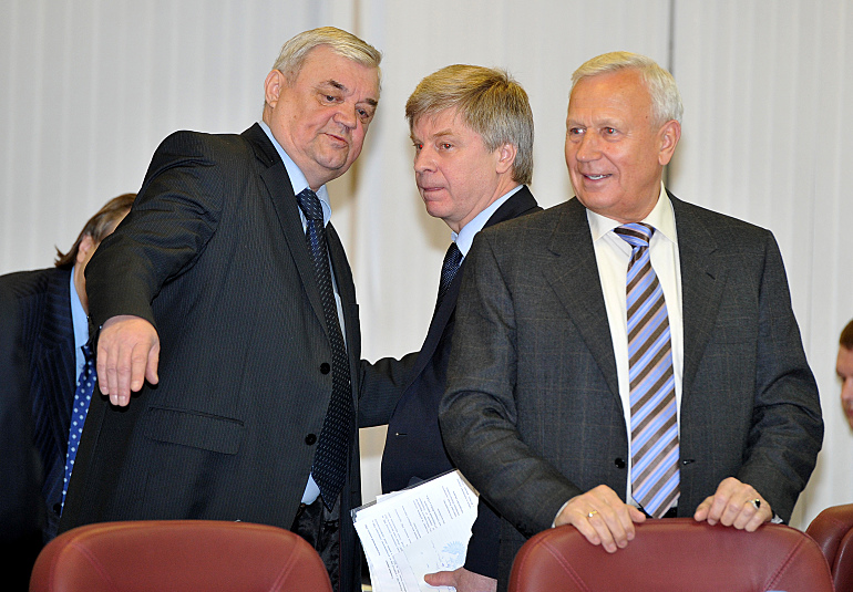 Пятница. Москва. Президент РФС Николай ТОЛСТЫХ (в центре) и почетный президент союза Вячеслав КОЛОСКОВ (справа) на исполкоме организации. Фото - Александр ФЕДОРОВ, "СЭ"